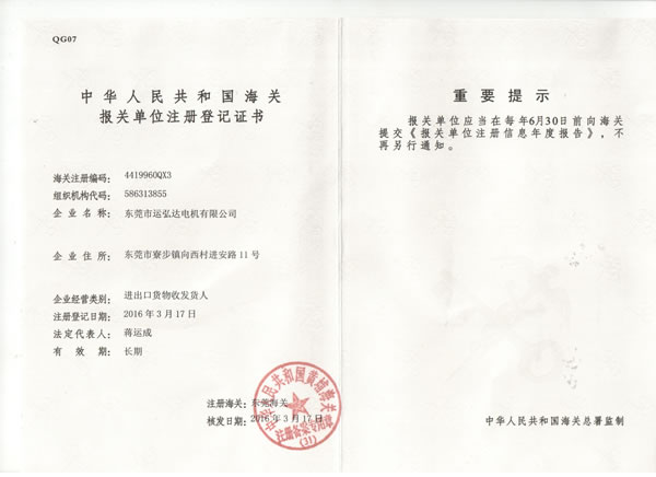 從開公司到現(xiàn)在,一直和運弘達合作,運弘達電機質(zhì)量非常好,都遵守ISO9001:2008質(zhì)量控制體系,我們很放心,并于貴公司建立良好的合作關系!還有優(yōu)質(zhì)的售后服務,遇到問題總能第一時間幫我們解決,非常感